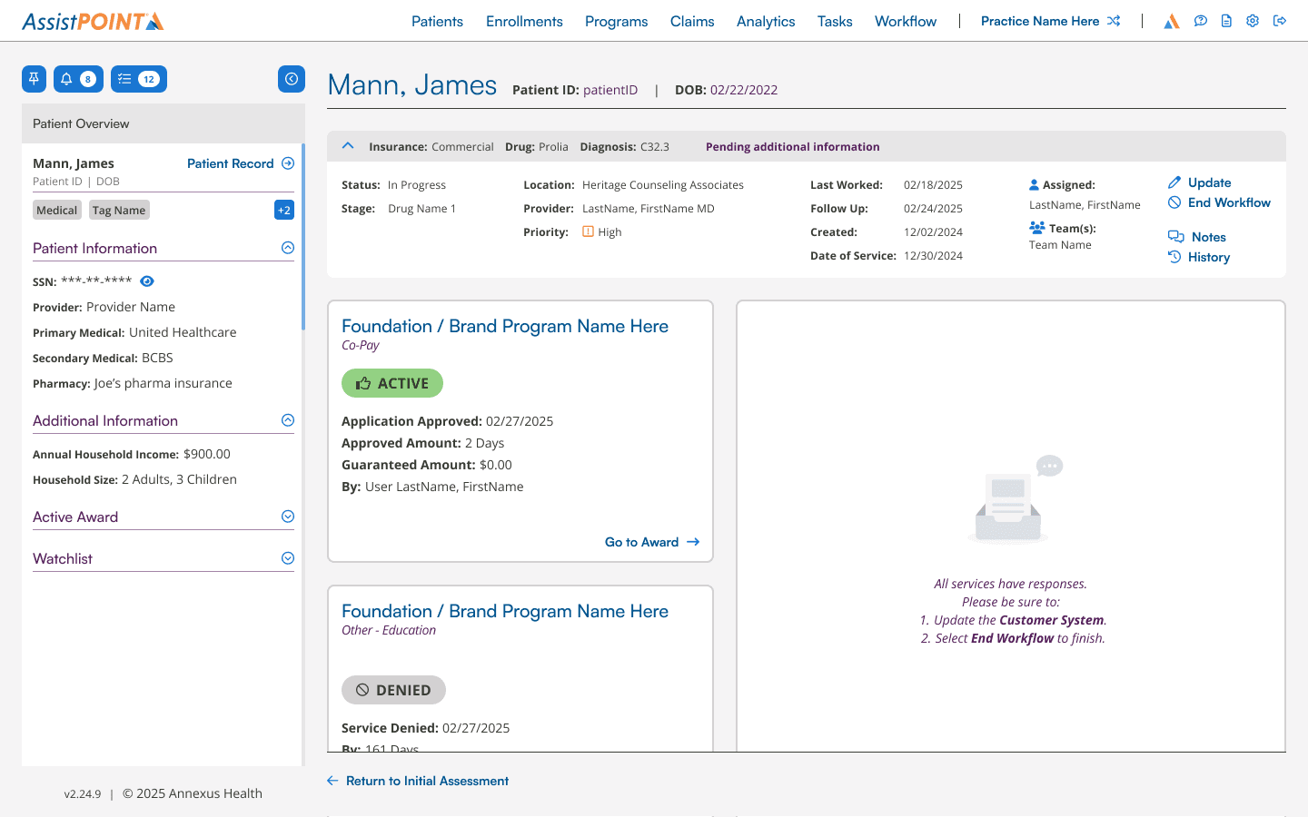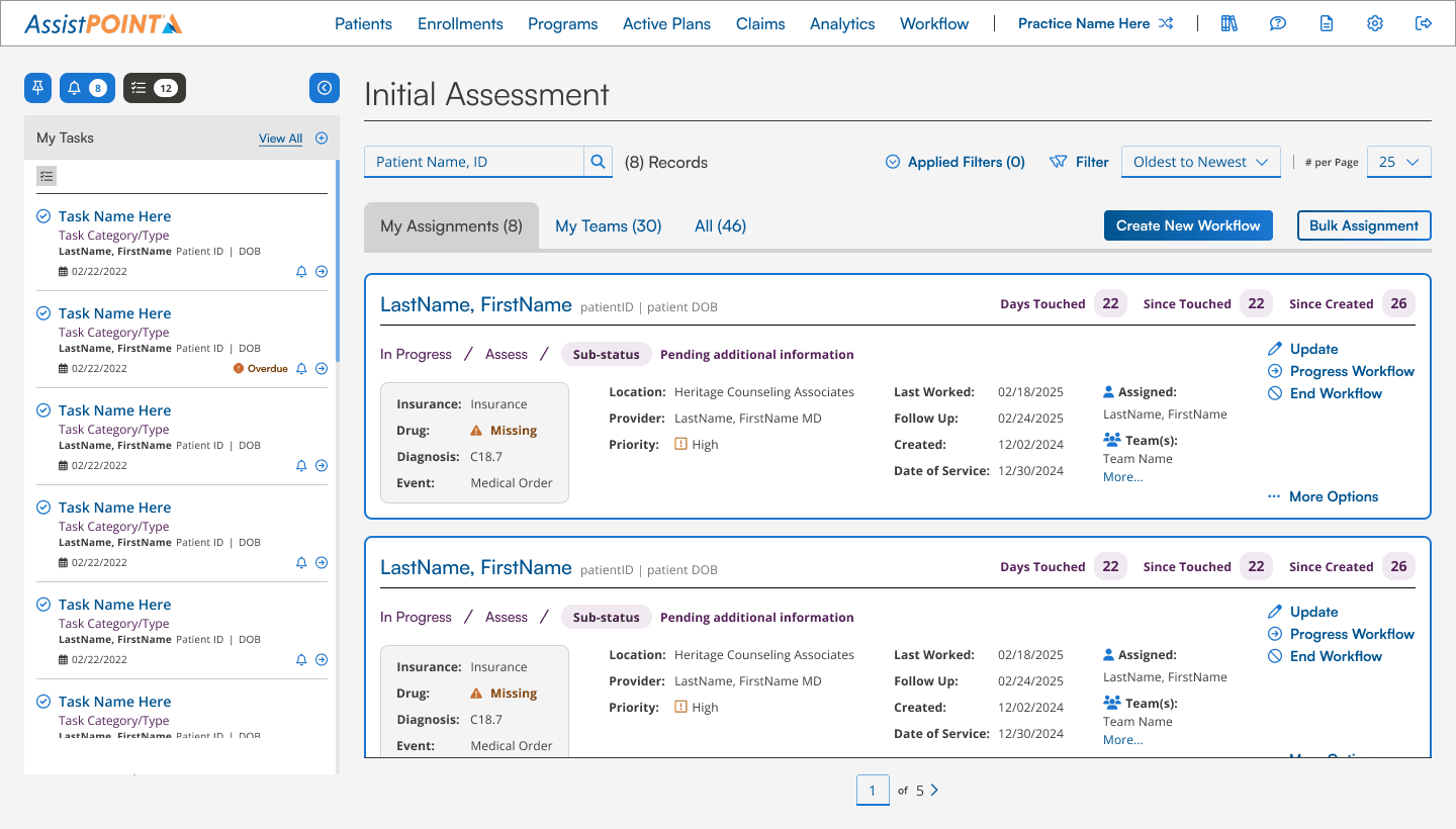 Financial counselors responsible for processing patient applications handle intense workloads of patients on a day to day basis. On a given work day, counselors can work on hundreds of patients, process several reports, and perform a large number of tasks related to the patients. My goal was to centralize their workspace and add tools to enhance the counselors’ workflows.